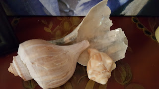 So, when I went to see The Mother Ocean for the first time this past week, I couldn't wait to tell her Our Family Blessing. I strode into the water and let the waves roll up to my knees. I raised my arms to the sky and said The Blessing as tears fell into the water. I asked The Mother to share some piece of wisdom with me and that I would stand right there in THAT SPOT until I heard her. The very next wave rolled up, and I felt a thump against my foot. I looked down to see a beautiful, whole, intact channel whelk sitting on my foot (very rare where we were). I picked it up and smiled with my whole heart. It was like a rainbow promise telling me one day I would be whole, again. Maybe not the way I thought I would be, and maybe better than I ever thought I could be. It will not be easy, in fact, it hurts a lot. But feeling bereft and sorrowful is not going to last forever. I am a broken vessel now and slowly, I rebuild and form into something new, different, bright and...whole.